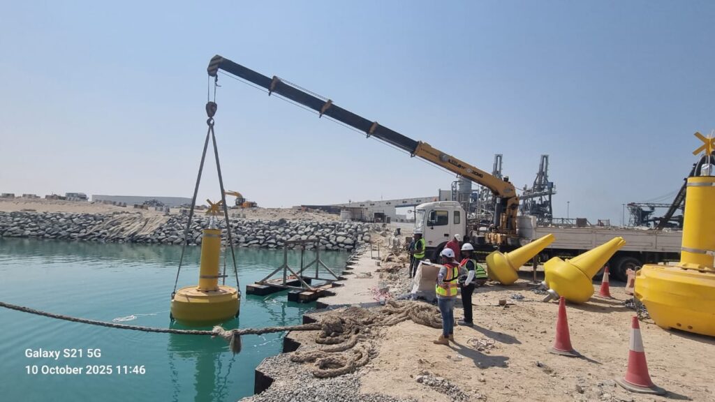 Geoseas supplied 2.2 m in diameter GeoTon Mega Buoys, engineered for extreme marine conditions. Their large size and bright colors enhance visibility, while robust construction ensures long-term durability. The buoys comply with international maritime safety standards and were deployed strategically to clearly mark safe navigation routes near the desalination plant.